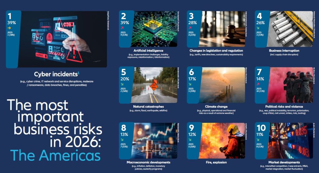 Panorama global de riesgos empresariales El Barómetro de Riesgos de Allianz 2026 confirma que la ciberseguridad lidera el ranking mundial